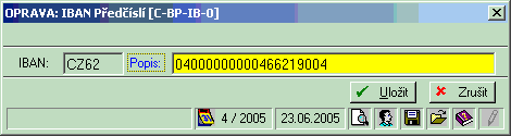 Buď je zadán pod pořadovým číslem a celý IBAN je v popisu, nebo jsou první čtyři znaky IBANu