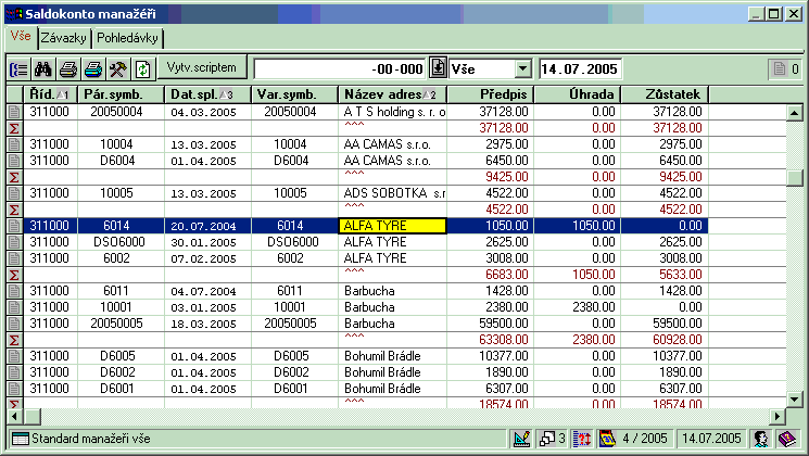 týkajících se jediného z typů salda, t.j. odběratelského, dodavatelského, mzdového, skladového,