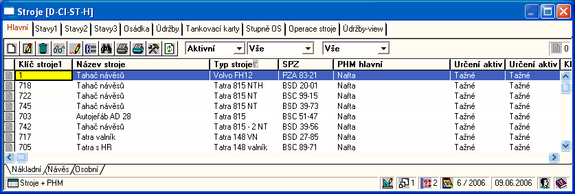 K editaci záznamu stroje slouží formulář se záložkami, které postupně popíšeme.