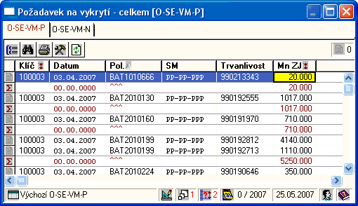 Popřípadě doplníme trvanlivost. Součet řádků v záložce skl. místech musí souhlasit s